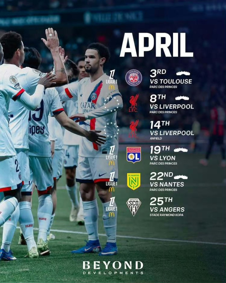 巴黎圣日耳曼四月赛程