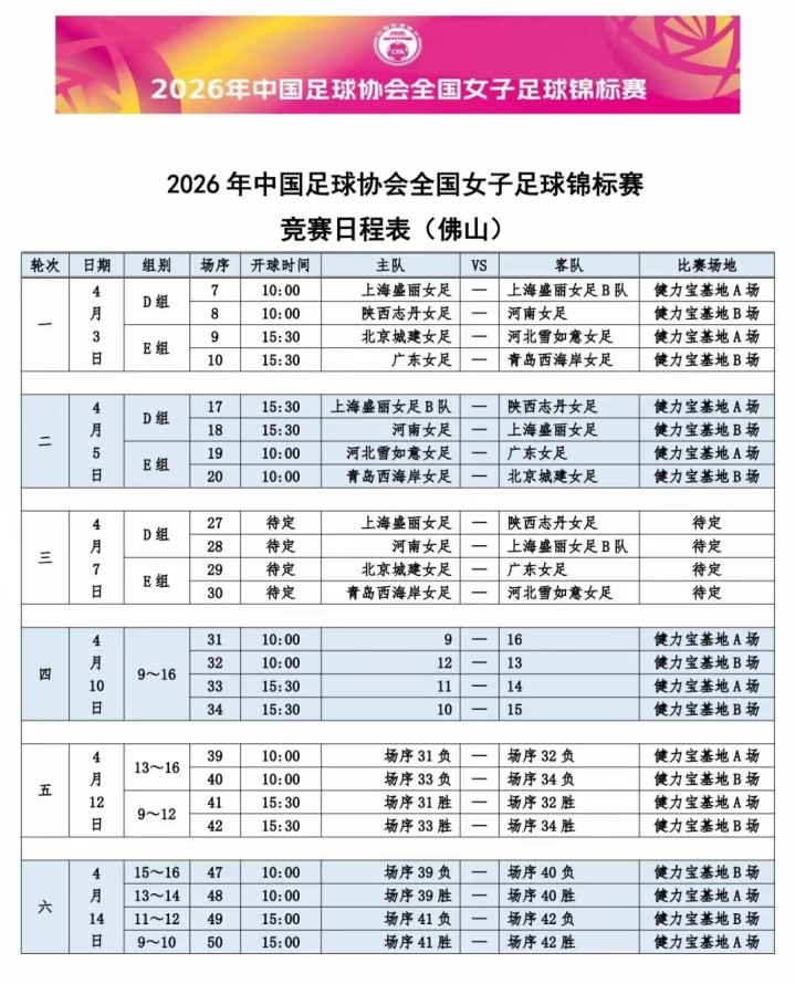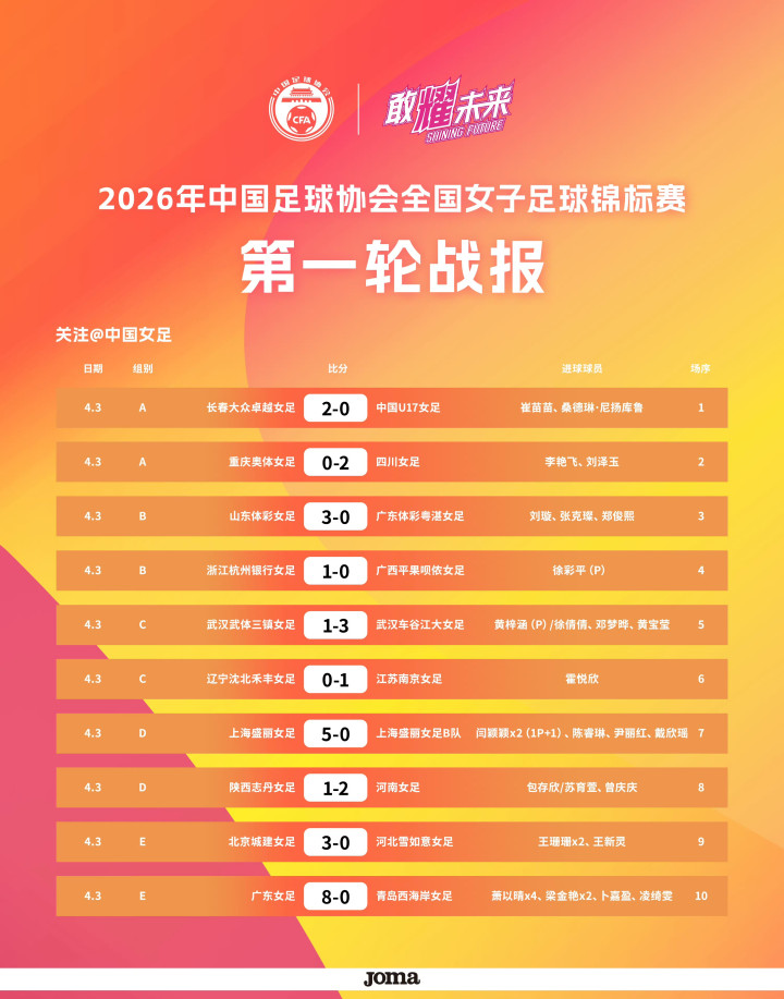 ②2026年全国女子足球锦标赛第一轮战报: